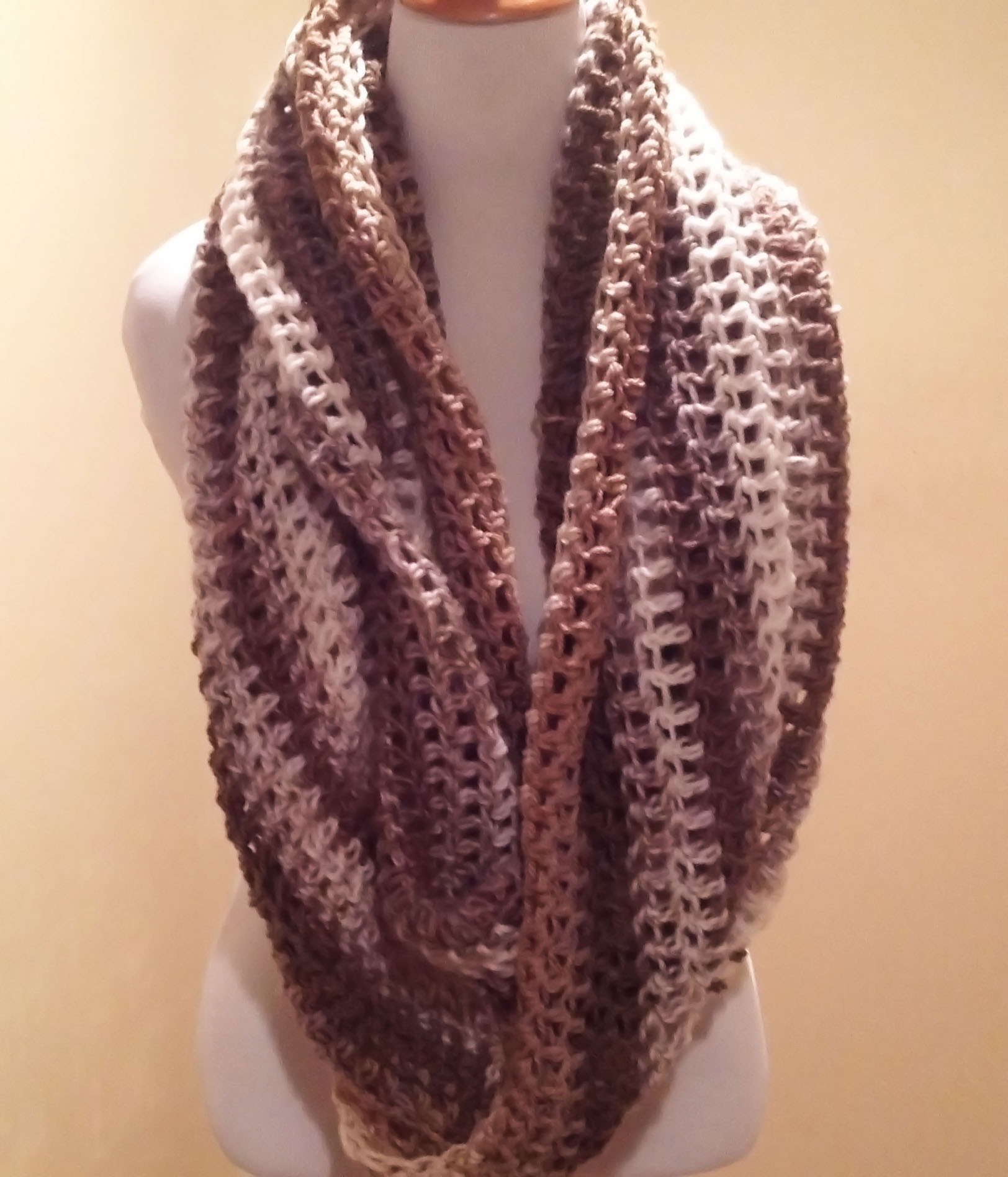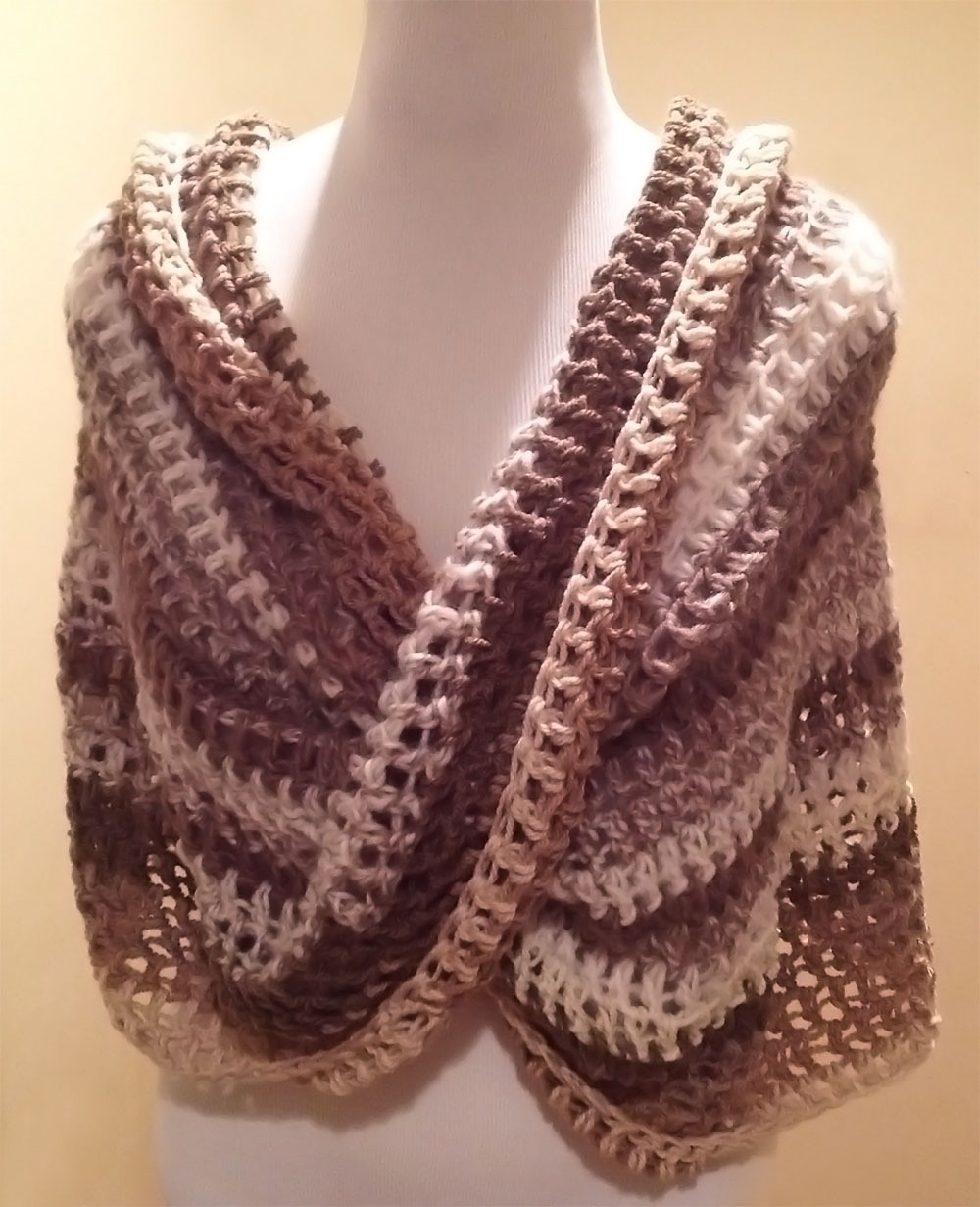 I learned about this type of garment many years ago that basically is an infinity scarf but it has a twist which gives it such a unique look. Rather than make this a scarf, I decided to make it a wrap and I have a picture of me modeling it to Sunday Church service!